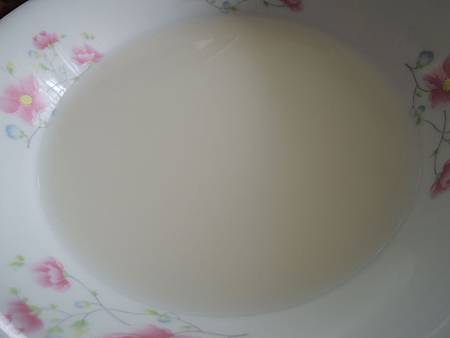 3. 牛奶250g + 其它粉類(玉米粉100g+卡士達粉10g+奶粉40g) 拌勻備用