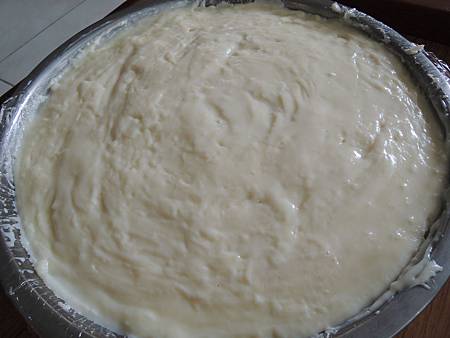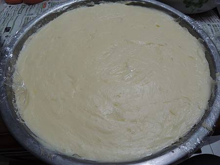 我找了一個比較深的大鐵盤,鋪上了保鮮膜 (也可以用烤焙紙哦,只是要方便脫模)