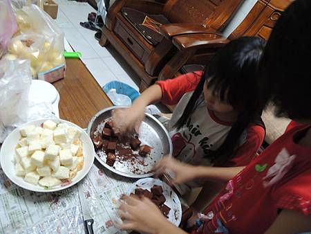 讓我舅媽家的小朋友去洗淨雙手,一起來沾椰絲和巧克力囉!!!
